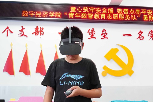 为深入贯彻落实新时代青年服务基层、奉献社会的指示精神,数字经济学院青年数智教育志愿服务队依托虚拟现实(VR)技术专业优势,创新构建“VR+数智大讲堂”与“技能+N数智小学堂”双轨融合育人模式。团队聚焦思想引领、安全防护、科技创新、生态保护四大核心领域,系统打造“1+7+N”课程体系框架,于2025年7月2日至6日在四川省泸州市叙永县兴隆社区开展暑期社会实践活动。通过VR沉浸式体验主导,融合情景模拟、手工实践、互动游戏等多元形式,为乡村教育注入科技动能与时代活力。