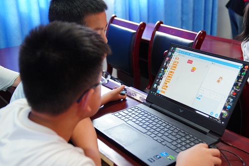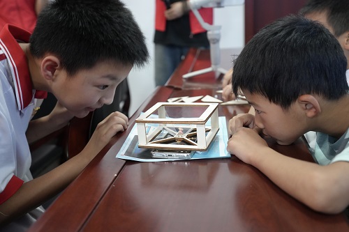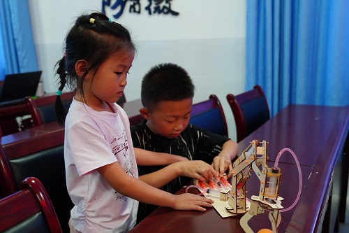 童心点燃代码光,数智之翼启远航。团队聚焦数字素养启蒙,播撒科技创新种子,以VR技术赋能编程教育,让逻辑“动”起来。志愿者通过讲解VR眼镜的工作原理,帮助孩子们建立对虚拟现实技术的初步认知。随后,孩子们在图形化编程界面中拖拽“积木式”模块,理解坐标移动、循环执行等基础概念,逐步形成计算思维。全息影像环节中,孩子们亲手制作三棱镜装置,在调试角度与光源位置的过程中,揭开立体成像的技术面纱。机械臂体验课上,孩子们使用吸管、橡皮筋制作机械爪,在“夹球挑战”中理解摩擦力、力矩平衡等物理知识,逐步形成“原理认知—模型制作—优化改进”的工程思维过程。科技主题T恤绘制则激发孩子们的艺术创造力,将飞船、机器人等未来想象转化为视觉表达,完成“技术认知—工程实践—创意表达”的素养进阶。让能力“燃”起来,让梦想“飞”起来,让科技的种子在童心中悄然萌芽。