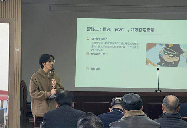2026年1月15日,南京航空航天大学致元书院“溧阳力行”社会实践队联合溧阳市古县村村委会,在村文化礼堂开展“反诈宣讲进乡村,青春护航暖夕阳”主题科普讲座,为老年人筑牢反诈安全防线。