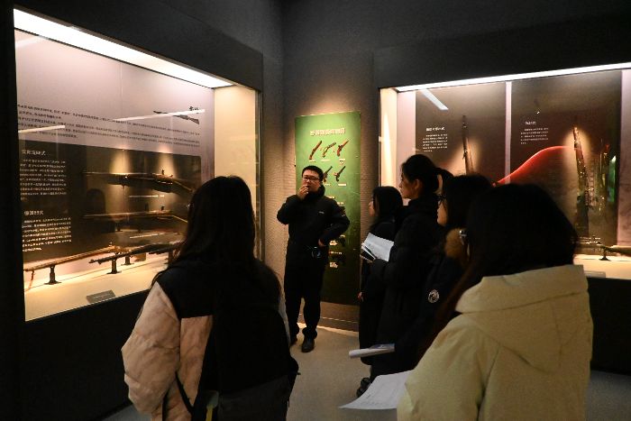 革命文物作为历史的实物档案,既是烽火岁月的实物见证,也是传承红色基因、解读革命精神的重要载体。1月15日,团队前往济南市博物馆调研。在“铁血长河—武器装备展”展厅中,成员们仔细观察了汉阳造、德国毛瑟等代表性展品,认真聆听了讲解员对其功能特点与历史背景的介绍。随后,团队成员参观了其他展览,并与工作人员进行了深入的请教与交流。成员们进一步认识到,博物馆叙事侧重于用实物串联历史片段,并借助文物组合、数字技术等方式,增强展览的沉浸性与感染力,使红色精神在具象载体中得以传递。