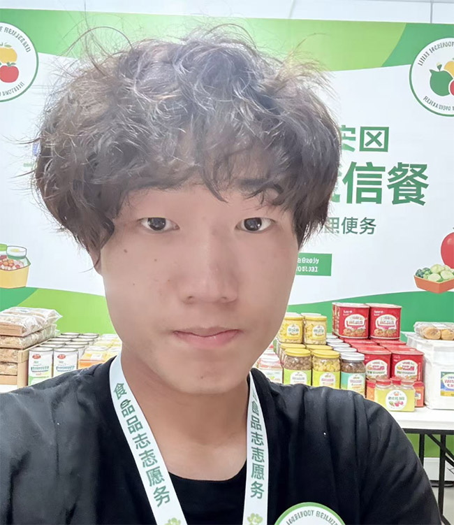 团队成员彭家旭参加了食品安全宣传活动,在活动现场认真学习食品安全相关知识。他表示,粮食安全与食品安全息息相关,作为粮食学院的学生,有责任将专业知识传播给更多人,共同守护“舌尖上的安全”。