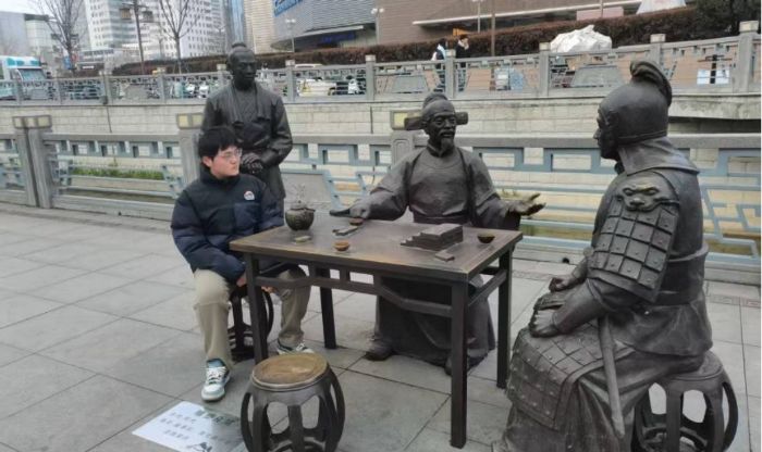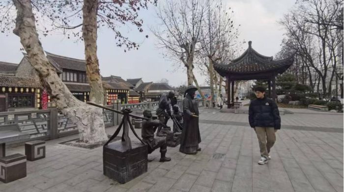 图7为实践团成员拍摄的雕塑,展现明代主导建设奎河的潘季训与陈文燧事迹。魏翕衡供图