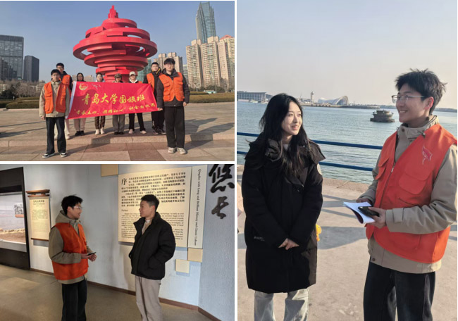 4.研学红色场馆,汲取精神力量 纸上得来终觉浅,躬身实践悟真知。依托线上查阅的资料与文旅局借阅的珍贵史料,实践团走进青岛市博物馆与青岛一战遗址博物馆,开启沉浸式历史研学之旅。馆内的一件件文物、一段段详实史料,清晰勾勒出青岛与五四运动交织的历史脉络,让实践团成员对那段以爱国、进步、民主、科学为核心的峥嵘岁月有了更直观的认知、更深刻的理解,也为队内的理论宣传资料库补充了大量鲜活内容。参观过程中,实践团成员还主动与其他参观者交流互动,通过现场采访了解不同人群对五四历史的认知与感悟,在思想碰撞中凝聚爱国共识。