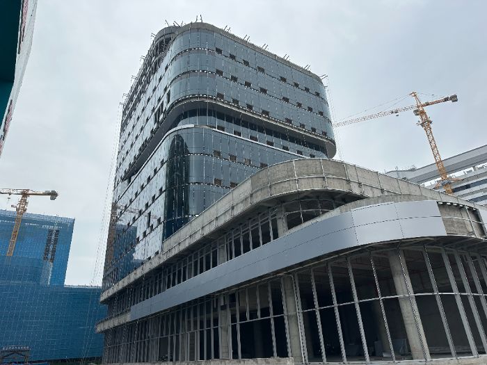 图 2 进行外侧玻璃幕墙装潢的#2主楼,张浩供图
