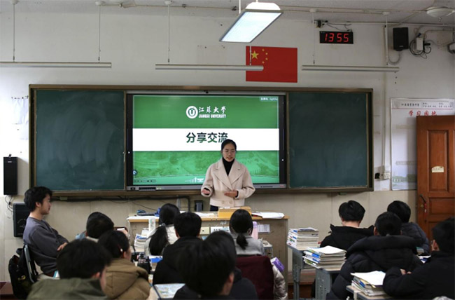 图为实践团成员在常熟中学与学生们分享交流。沈越甜 供图