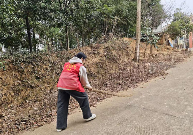 冬日落叶纷飞,她在家拿起扫帚,开展村道公共区域卫生整治,将马路上的树叶扫至边上,红马甲与扫帚声交织成曲。她深知,家乡的美,不仅在于山水的秀丽,更在于每一寸土地的洁净与每一份秩序的井然,扫去的是尘埃,留下的是青年的责任与担当。
