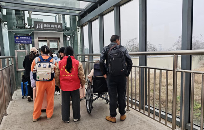 在高铁站护航春运归途。她与来自多所高校的返乡学子一同坚守在春运一线,为来往旅客提供帮助。志愿者姚丽婷在出站口协助旅客通行。一位坐轮椅的女士需乘电梯出站,但电梯位置不明确。她立即向工作人员询问,确认无障碍通道后,一路指引并协助该女士顺利出站。她连声道谢:“太感谢了,不然真不知道怎么办。”那一刻,她深感志愿服务的意义。期间还遇到不少老年旅客、携带大件行李的返乡人员,姚丽婷都主动上前帮忙提拿行李、指引路线。虽然站内人流量大,来回奔波有些疲惫,但看到他们轻松的笑容,一切辛苦都值得。下午,她在售票处协助一对夫妇购票,并主动帮忙提拿行李。男士惊讶地说:“现在还有这服务?太贴心了!”一句肯定,让她倍感自豪。