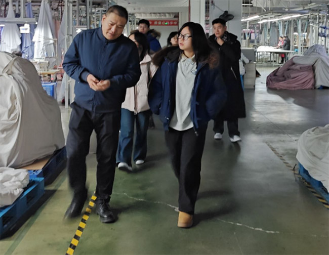 座谈结束后,在熊经理的亲自陪同下,实践队师生参观了富安娜公司的现代化生产车间。同学们近距离观摩了从原料检测、智能裁剪、精细缝制到品质管控、仓储物流的部分生产流程。熊经理及现场技术人员就同学们提出的关于自动化设备应用、生产工艺标准、供应链管理、环保材料使用等专业问题,给予了耐心细致的讲解。通过实地探访,同学们对家居制造业的科技含量、精益管理水平及产业升级现状有了直观而深刻的认识。