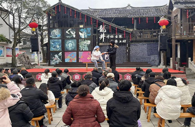 贵州大学博士村长老有所养,和谐共“乐”实践队在龙井村活动广场开展的反诈剧场活动 赵倩倩 配图