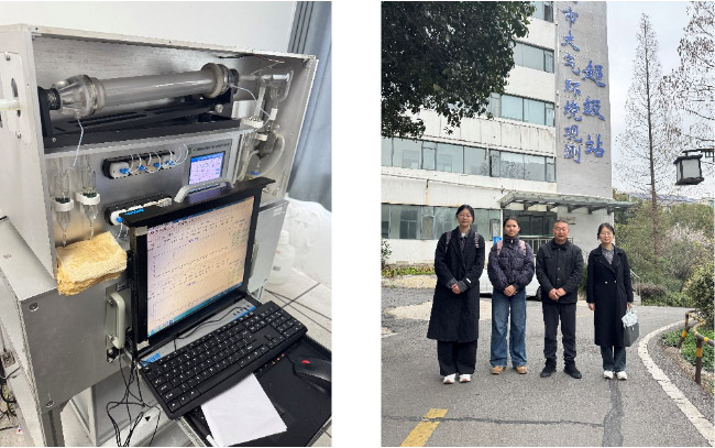 图为在线监测阴离子、阳离子浓度。李安睿 供图 图为调研组与工作人员合影。李安睿 供图