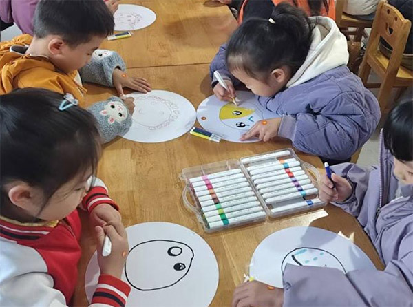 在“心情涂色”互动环节,志愿者为孩子们分发空白表情轮廓卡纸与彩色画笔,鼓励大家用色彩表达当下心境。明亮的红黄配色勾勒出咧嘴大笑的表情,粉紫相间的笔触绘出恬静的神态,蓝黑配色表达出难过不安的情绪,一张张画作成为孩子们真实心境的生动写照。