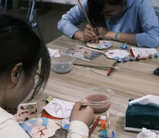 采访艺术家,揭秘敦煌彩塑的韵味 吴未西东团队走进敦煌莫高里工匠村,采访传承敦煌彩塑艺术的艺术家尤路平先生。在听完尤路平先生对于彩塑艺术的原理及技巧的介绍之后,团队成员亲手体验了传统的石粉彩绘。五色杂陈的的仙禽、红消绿冷的飞天、璀璨华丽的珠翠……那些灵动又辉煌的敦煌壁画凝结了历史瞬间的永恒影像。在莫高里工匠村,团队成员亲身体验石粉彩绘,拓印下莫高窟内壁画的一角,追寻从未消逝的匠心。制作过程中,工作人员详细讲解了石粉的来源、调配方法以及如何将其运用到壁画绘制与敦煌彩塑中。临摹壁画的过程中,成员们似乎感受到了历史的厚重与艺术的灵动,在壁画的复刻中,体会敦煌文化千年不朽的蓬勃生命力:“那一瞬间,仿佛是在与古老的壁画对话。”