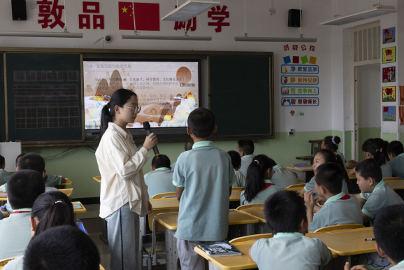图为吴未西东团队在敦煌市第五小学授课。王媛媛 供图