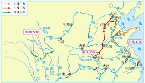 图4-1 南水北调线路示意图