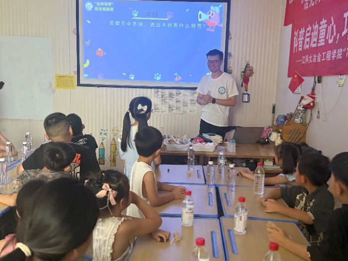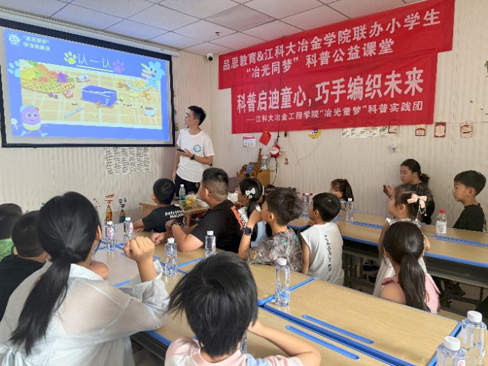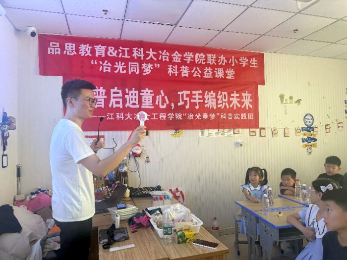 为普及科学知识,提升儿童科学素养,6月29日,江苏科技大学张家港校区苏州理工学院“冶光童梦”科普实践团走进帝景豪苑旁的品思托管中心,开展以“探索生活材料奥秘”为主题的科普实践活动。实践团成员朱宇辉担任主讲人,通过丰富的教学形式与互动环节,为小朋友们带来了一场生动的材料科学启蒙课。