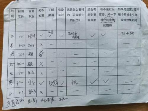 为捕捉这份政策在民间的真实脉动,团队成员顶着盛夏骄阳,步履不停穿梭于社区街巷。带着精心打磨的访谈稿和调查表格,与居民围坐畅谈,重点了解大众对“以旧换新”政策节能效益的认知。