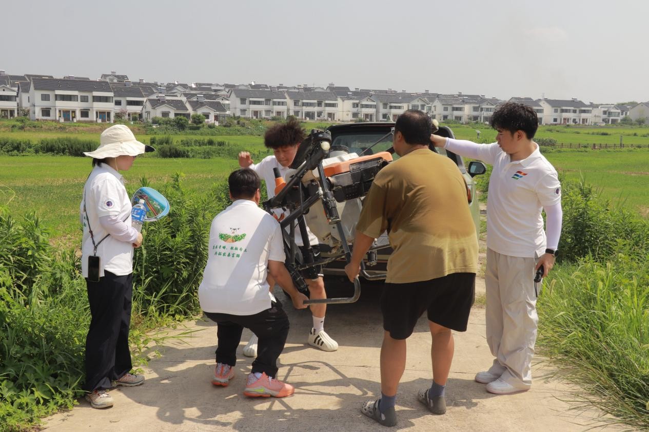 盛夏时节,农作物的病虫害防治工作进入了紧要阶段。为让青年学子近距离触摸智慧农业的前沿脉搏,亲身感受新农人扎根田野的创业实干精神,“翼展青畴,航耘句土,共拓农桑富路” 实践团特地拜访了句容市优秀新农人代表夏洪宇。在他的悉心指导下,实践团成员深入天王镇唐陵村田间地头,顺利完成了一次专业的无人机植保飞防作业,为当地农耕生产注入科技活力,也为自己上了一堂生动鲜活的 “科技兴农” 实践课。