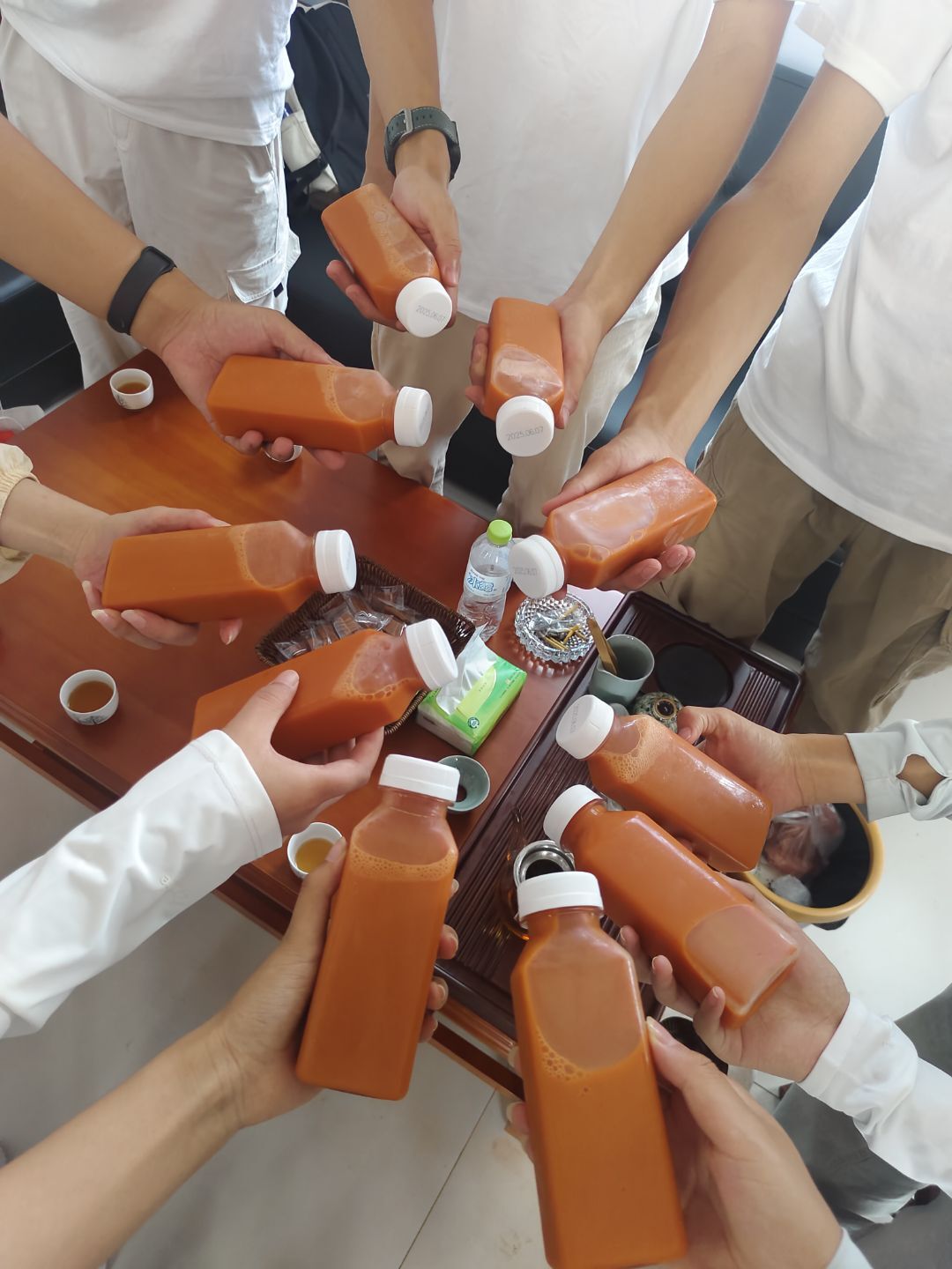 在交流过程中,我们了解到农场在“药食同源”领域的一些创新尝试。以胡萝卜为例,它不仅是一种常见的蔬菜,更是被转化为了丰富的经济销售渠道。农场购置了榨汁房车,深入到城市的各个角落,现场为消费者提供新鲜的胡萝卜汁,这种新颖的销售方式深受市民喜爱。同时,农场引入了HPP冷链保存技术,极大地延长了胡萝卜汁的保存时间,使其能够在更广泛的市场范围内销售。此外,胡萝卜还被加工制成果干等小零食,对外售卖,进一步拓展了产品的附加值。