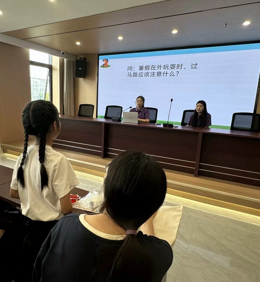 了红色故事的分享,实践团队还十分关注小朋友们的暑期安全。他们为小朋友们开展了一场生动的暑期安全教育讲座,内容涵盖了防溺水、交通安全、消防安全等多个方面。“小朋友们,夏天到了,千万不能私自去河边游泳哦,很危险的。”团队成员一边说着,一边展示了一些溺水事故的图片,让小朋友们直观地感受到溺水的危害。