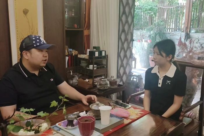 实践团成员李冰鑫采访楚香传承人陈述杰先生 李凯发摄