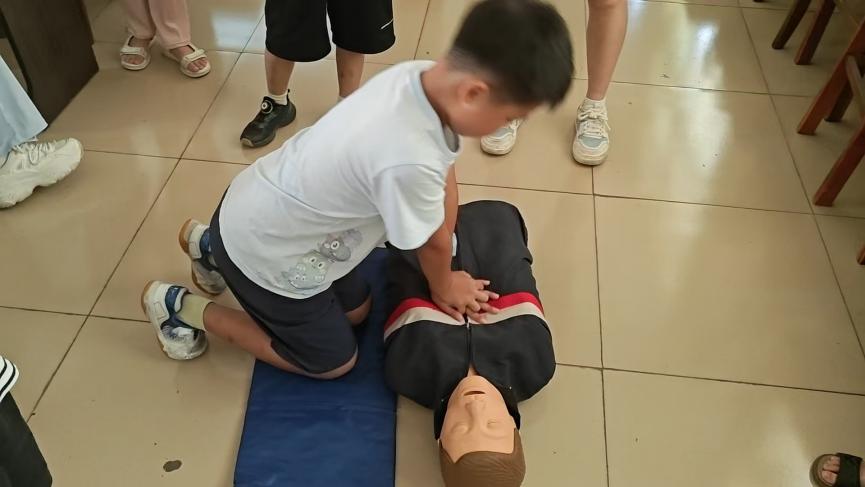 义教期间,突击队与侨中师生积极推进安全课程。在《消防与用电安全》课堂上,侨中师生通过视频教导与案例分析的方式,教授了学生火灾逃生、正确用电方法,为学生们讲解了遇险时的应对步骤。而《防溺水安全》课程则结合英红镇水域特点进行教学,并带领学生们现场进行心肺复苏演练,学习自救与互救技能。除了安全教育课堂,活动还同步开设了心理健康课程。《正确认识自己》、《情绪管理》等心理课堂引导学生全面认识自身优缺点、学会调节情绪,为乡镇孩子们的健康成长保驾护航。