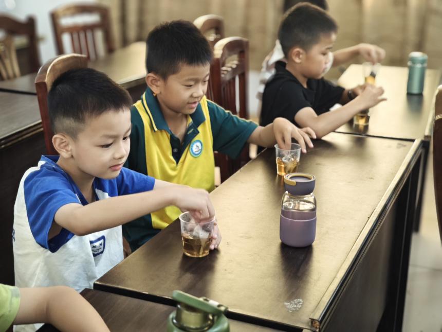 如《茶叶中叶绿素的提取》实验,学生们在突击队队员的指导下,经过研磨、过滤等步骤,成功提取出叶绿素,理解光合作用原理。又如《英德“红”茶》课程,通过介绍英德红茶历史、讲解红茶制作中“萎凋(水分蒸发)、揉捻(细胞破碎)、发酵(酶促反应)、干燥(固化品质)”的四大原理与开展红茶冲泡实践,让学生在茶香中感受本土文化与生物知识的融合。