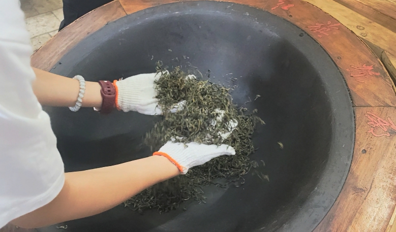 随后,突击队来到红旗茶厂,系统调研企业发展历程与产业运营模式。走进老厂房,队员们先聆听茶厂的发展历程,再观摩传统制茶工艺。移步炒茶区,大家卷起袖子,双手伸进温热的铁锅,快速翻抖鲜叶,在腾起的茶香中体会温度如何塑造茶质,感受传统工艺与科学原理的巧妙呼应。在了解茶厂历史与制茶工艺的过程中,队员们深刻感受到:红旗茶厂不仅是英红镇茶业发展的亲历者,更是一部鲜活的地方志,为今天乃至未来的产业升级积淀了弥足珍贵的经验。