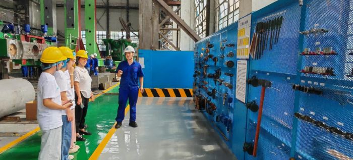 第三站——走进重工企业,深化专业认知 实践团队走进中国第二重型机械集团公司,近距离接触中国重型装备制造业的核心领域。在工作人员带领下,大家深入热加工与冷加工厂房,巨型机床的精准运转、精密构件的有序陈列,让机械设计、能源动力专业的成员们,将课本里的数控技术、材料力学等知识与真实生产场景对应起来。企业专家结合发展历程,详解了重型装备的动力系统设计、大型构件的制造工艺等核心技术,针对人才需求,专家强调扎实的机械原理基础、能源系统优化能力至关重要,为成员们的专业学习提供了实践参照,也让大家更清晰地认识到所学专业在“大国重器”制造中的应用价值。