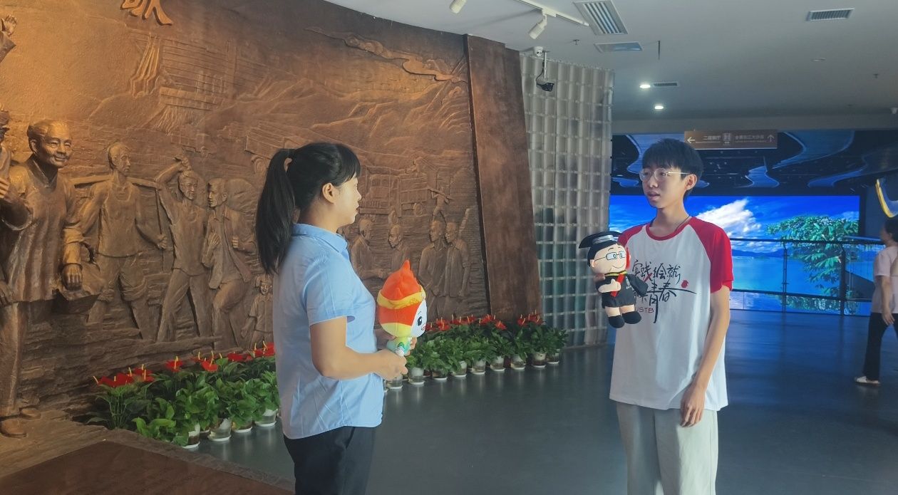 巧合的是,实践团抵达东江移民博物馆时,馆内正热闹举办第二届“红领巾讲解员”文化志愿服务活动。得知活动详情后,实践团成员当即与馆内工作人员取得联系,主动请缨加入志愿服务队伍,以实际行动践行移民精神中的奉献担当。活动现场,实践团成员们有条不紊地向参与活动的小朋友们发放东江移民博物馆的图文资料。每一次递出资料的动作,都像是在完成一次特殊的“精神接力”—— 将东江移民“舍家为国、艰苦创业”的动人故事,悄悄播撒进孩子们的心田;把“奉献担当、敢为人先”的精神火种,稳稳传递给新一代的青少年。这场意外的志愿服务,让移民精神在代际传递中焕发新的生机,也让实践团的暑期实践更添了一份薪火相传的深意。