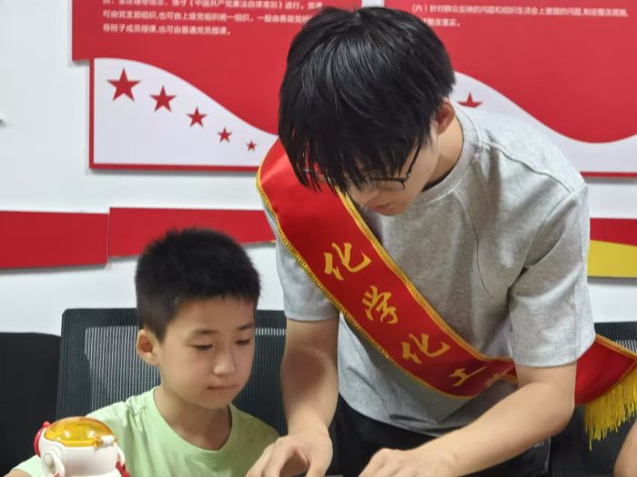 为深入贯彻落实中共中央宣传部《关于促进全民阅读工作的意见》及教育部《全国青少年学生读书行动实施方案》精神,积极响应“深化全民阅读活动,建设书香中国”的国家战略部署,聚焦青少年红色基因传承工程,引导少年儿童在书香浸润中感悟红色文化伟力、厚植爱党爱国情怀,6月29日,化学化工学院星之源志愿服务队走进聊城市东昌府区兴业社区,成功举办“薪火传红星,实践润社区”志愿服务活动。活动旨在通过沉浸式阅读与体验式实践相结合的方式,将国家倡导的全民阅读理念、传承红色基因的时代要求与青少年成长教育深度融合,筑牢信仰之基。