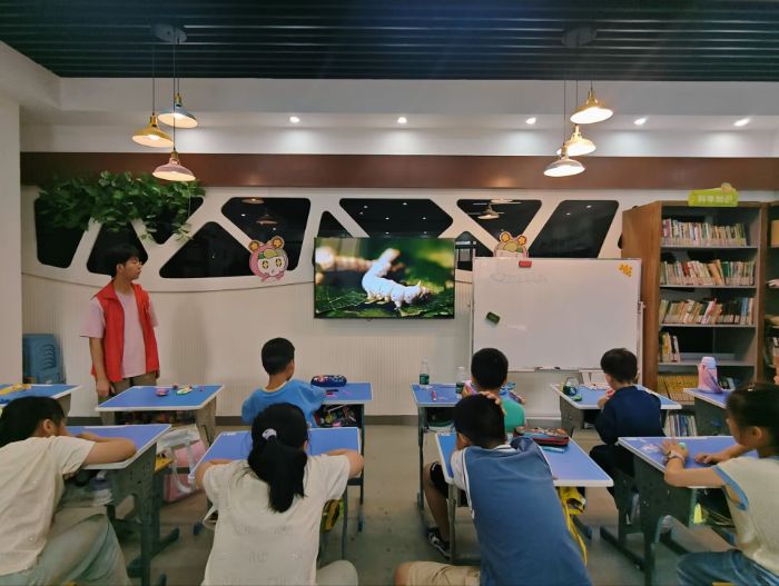 志愿者们还结合蚕桑特色开展相关课程。7月15日,志愿者陈睿翔为孩子们讲解了蚕宝宝的一生以及蚕桑的重要作用,让孩子们领悟到蚕桑文化的魅力,增强了孩子们对蚕宝宝的科学认识以及文化自信。