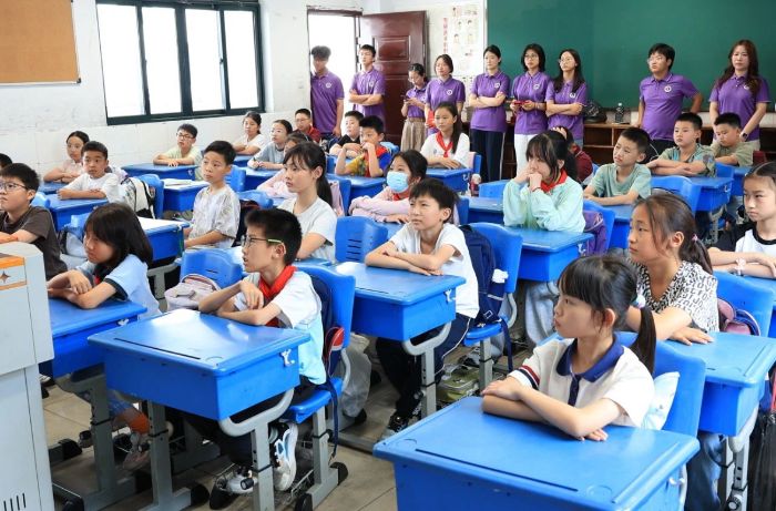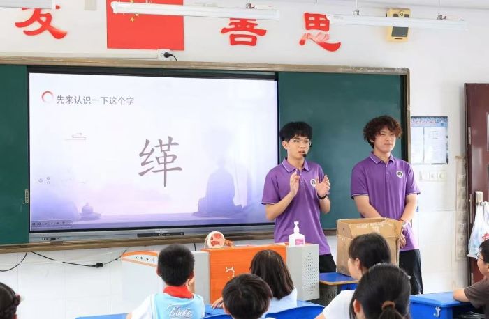 为大力弘扬中华优秀传统文化,引领学生真切领略非遗文化的独特魅力,深度探寻传统技艺的精妙之处,6月26日,扬州大学广陵学院“探寻运河文脉,赓续红色基因”大学生暑期社会实践团队,走进苏州市崇道小学校,为四年级的同学们精心打造了一场趣味横生的“非遗进校园”缂丝主题活动。