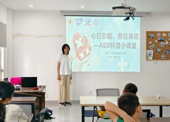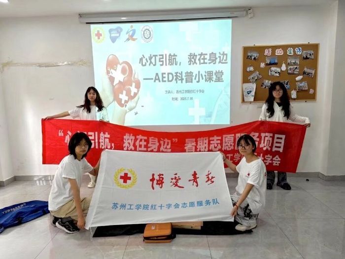 为持续推动“人人学急救、急救为人人”理念在基层社区落地生根,7月16日下午,苏州工学院“博爱青春”暑期志愿服务项目小组走进常熟市天禧社区,开展了一场以“AED使用知识”为主题的社区融合型宣讲活动。