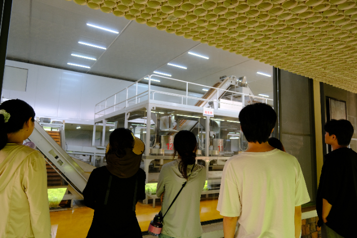 队员们还前往茶叶制作车间参观。还未走进车间,浓郁的茶香便扑鼻而来,“未见其形,先闻其香”的感受十分真切。透过玻璃墙面,能看到车间里的机器正翻卷着茶叶,发出轰轰的声响。新鲜的茶叶在机器的运作下,经历凋萎、杀青、揉捻、发酵、干燥等一道道工序,完成从鲜叶到成品的蜕变,最终成为一杯香韵悠长的英德红茶。队员们认真观察每一个制茶环节,详细了解其中的原理和工艺,深刻感受到制茶过程的复杂与精妙。