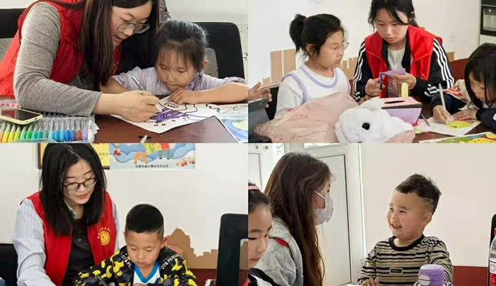 随后,志愿者们把各式各样的图画模板摆满桌面,有的小朋友挑选自己喜欢的图案,并在志愿者的耐心指导和陪伴下,认真地进行绘画和填色;有的则在空白画纸上随心涂鸦,创造出独一无二的艺术作品。绘画过程中,小朋友与志愿者积极交流,分享着对色彩和图案的独特想法,在沟通互动中逐渐学会清晰表达自己的需求和感受。