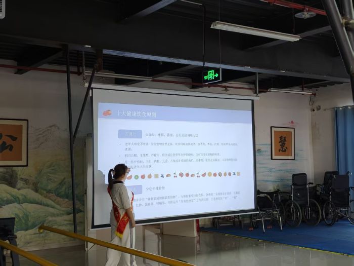 紧随其后,服务队将目光投向老年群体,走进聊城市高新区慧德养老公寓,举办“食安知识润桑榆,健康理念护晚晴”志愿活动。活动精准对接国家积极应对老龄化部署及《老年人权益保障法》健康权益保障要求。志愿者深入解读《食品安全法》“预防为主、全程控制”原则,剖析保健品乱象等热点,强调辨识标签、选择正规渠道。核心聚焦老年特殊生理需求,以“身体需优质燃料”为喻,系统传授“科学膳食宝典”:倡导“少量多餐”、“优化蛋白来源(如豆制品替代部分红肉)”、“限制油炸”,并针对慢性病详细讲解“少三白(盐、糖、脂)”、“多三黑(黑木耳、黑米、黑豆)”饮食原则,结合国家膳食指南阐释低盐富钾饮食益处。活动反响热烈,老人们纷纷表示掌握了实用技能(如认准保健品“蓝帽子”、使用控盐勺),深刻感受到国家与社会对老年健康的关怀。活动有效填补了养老机构精细化饮食指导空白,显著提升了老人健康素养与自我管理能力,弘扬了尊老爱老风尚。