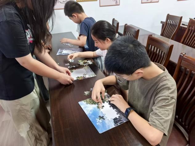 图为小学员们和老师合力完成大运河无锡段美景拼图
