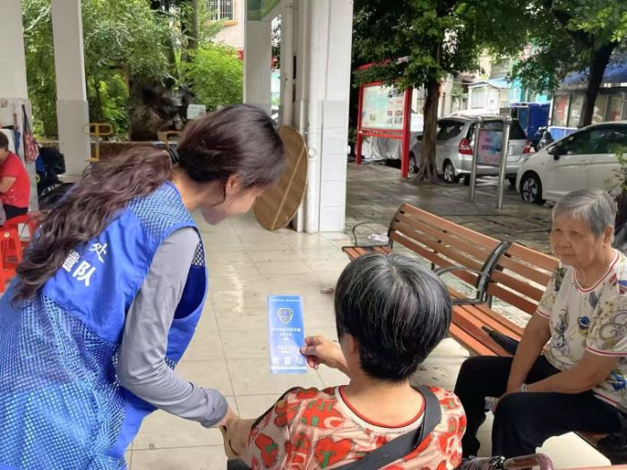 图为突击队向社区居民宣传反诈政策