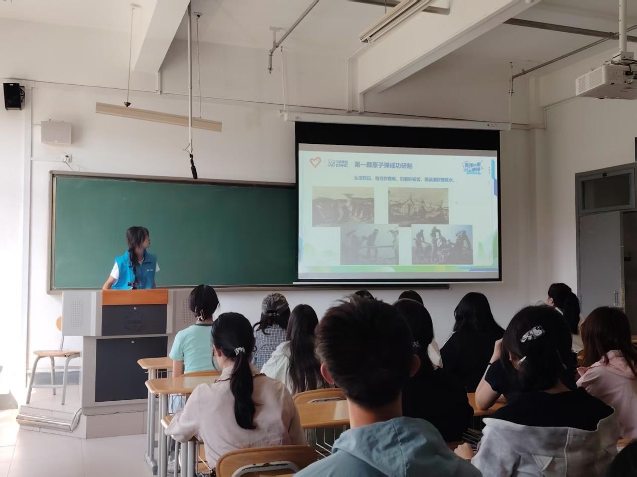 在庆祝中华人民共和国成立76周年的浓厚氛围中,一场跨越近半年的红色精神传承之旅在金城兰州圆满落下帷幕。自2025年6月启动至11月底结项,兰州大学“核星之火”志愿宣讲团(以下简称“宣讲团”)以“两弹一星”精神为旗帜,深入校园、走进社区、扎根基层,成功举办了为期近半年的“两弹一星”精神志愿宣讲项目。项目累计开展主题宣讲活动10场,直接覆盖大学生、社区居民、小学生等各类群体超600人次,间接受益逾千人,以青春之声奏响了新时代爱国奋斗、科技自强的激昂乐章。