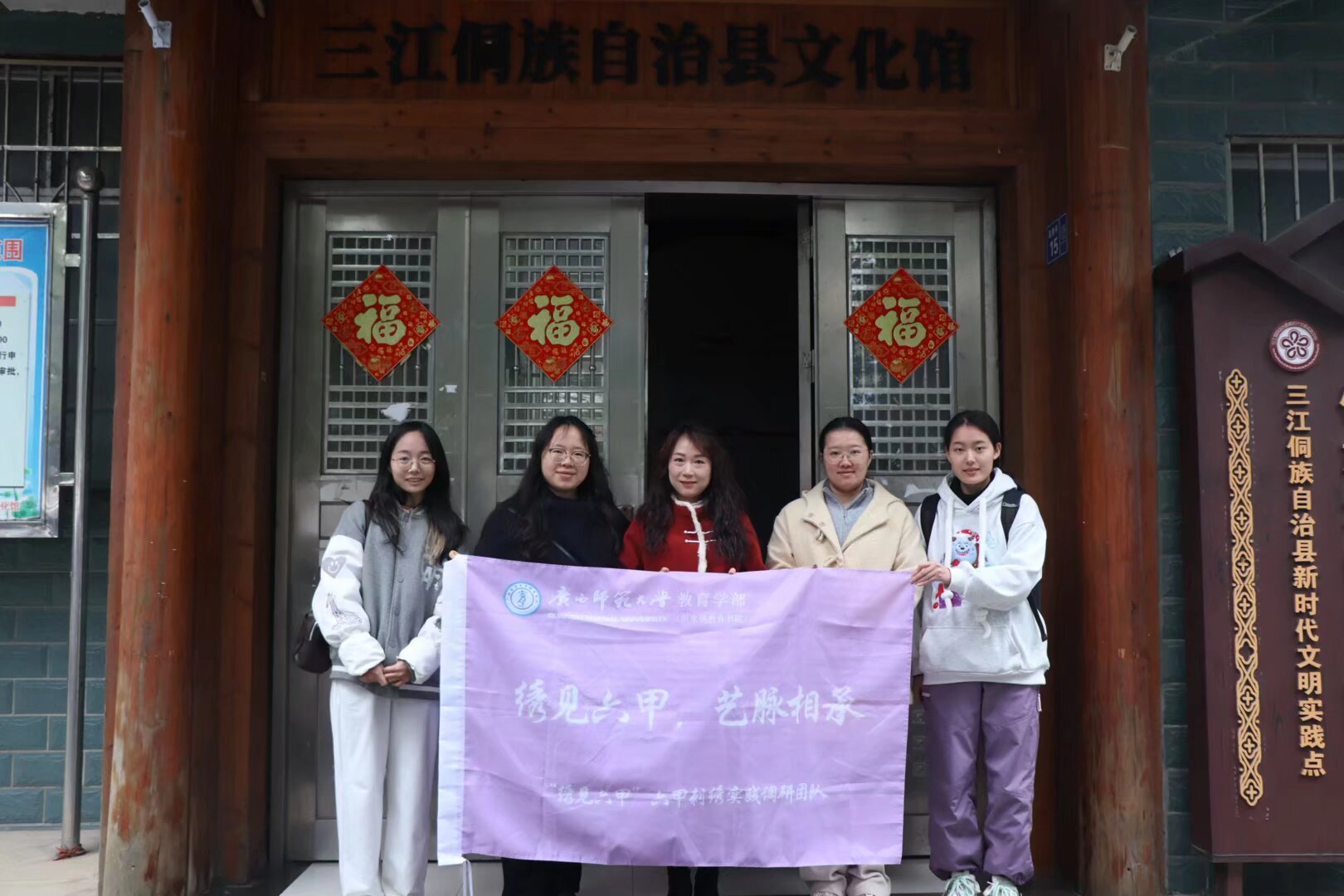 三天的调研行程,广西师范大学教育学部“绣见六甲”六甲刺绣实践调研团队的足迹遍布三江的协会、广场、校园、博物馆与文化馆,通过与不同群体的深度对话,全面梳理了六甲刺绣从文化渊源、技艺特色、传承现状到地方支持的调研资料,为团队后续传承六甲刺绣、助力乡村文化振兴的路径提供了详实有效的借鉴,让传统非遗在青春力量的助力下焕发新活力。