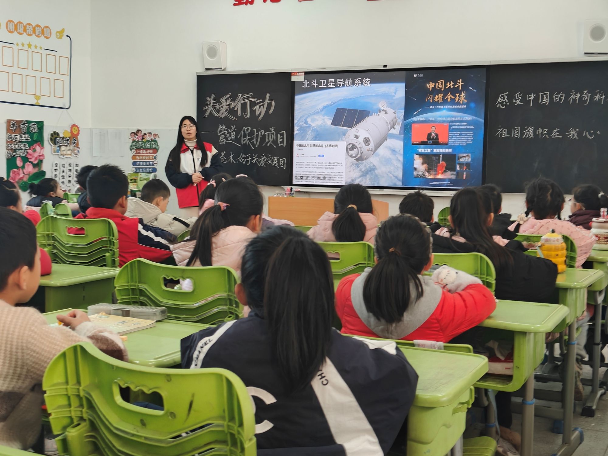 图为志愿者向孩子们介绍北斗卫星导航系统。陈宇 供图