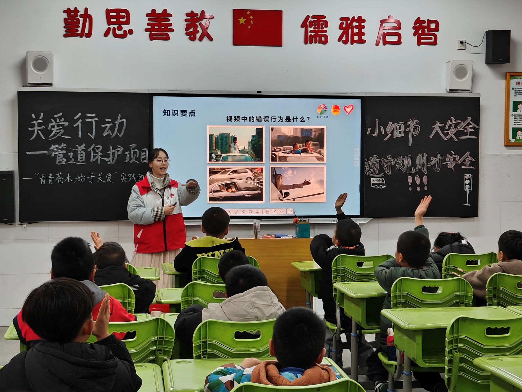 图为志愿者讲解《小细节,大安全》时孩子们积极参与回答问题。陈宇 供图
