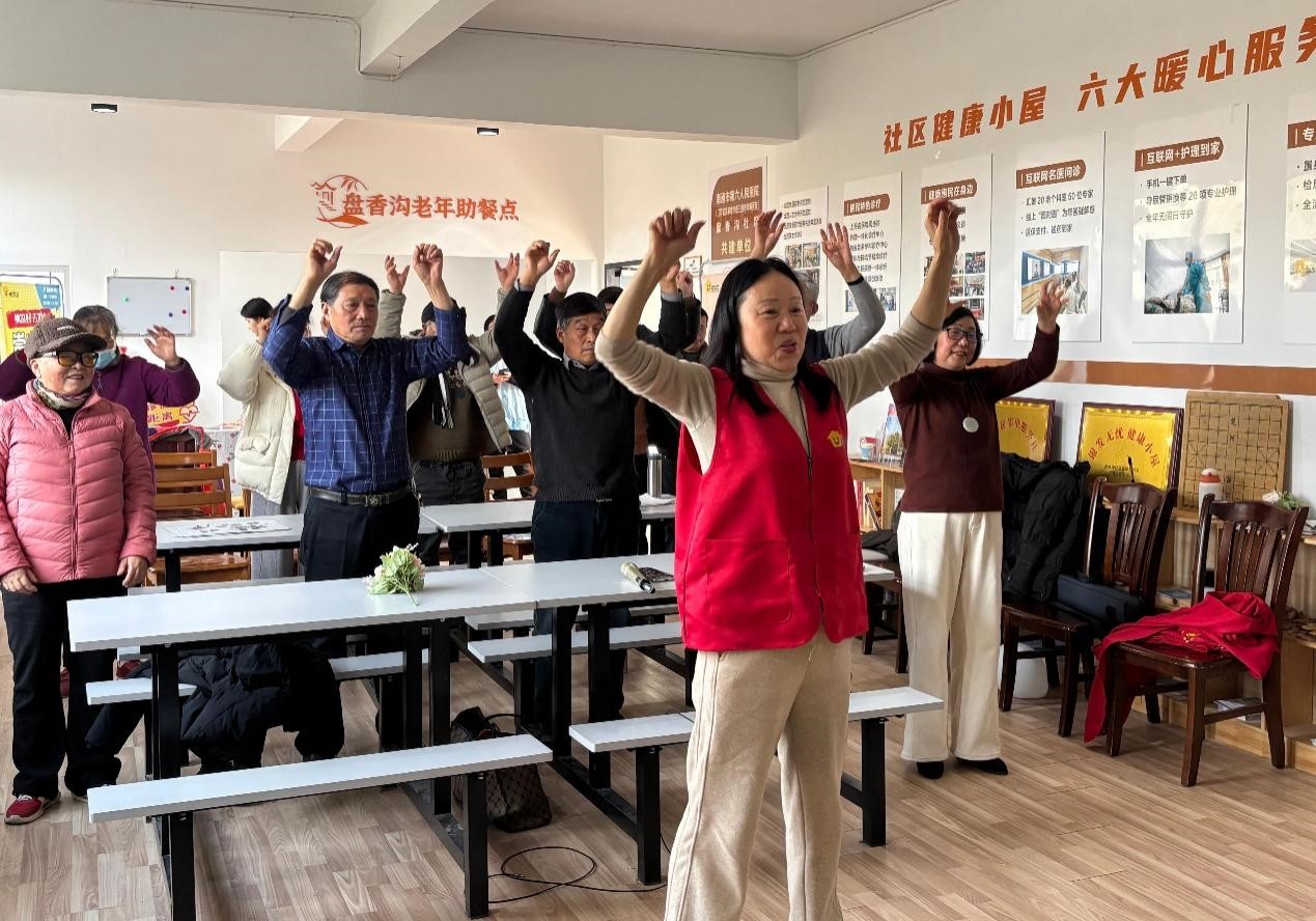 图为银龄志愿者带领大家做热身活动。王冲 供图