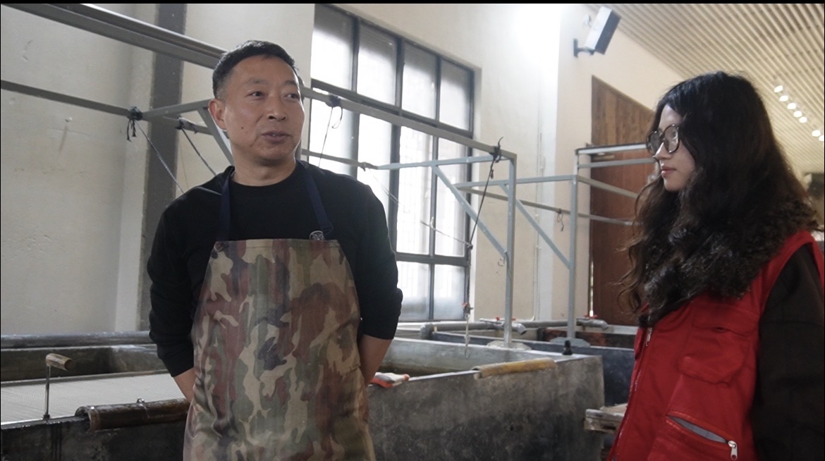 图为纸境·疗愈队成员在同连四纸非遗传承人交流,许卓妍 供图