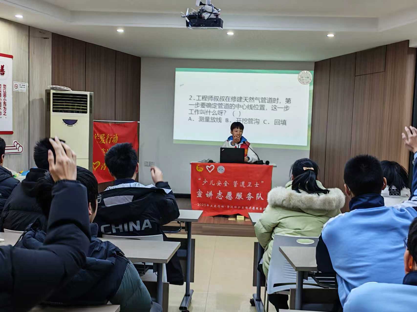 1月24日,江苏省南通市新城桥街道朝晖社区多功能电教室暖意融融、活力迸发。苏州大学“少儿安全・管道卫士”宣讲志愿服务队紧扣国家能源安全要求,积极响应团中央2025年关爱行动“少年儿童安全守护计划”,以返家乡社会实践为纽带,联合朝晖社区团委在此暖心开启该计划管道保护宣传活动,江苏省南通第一中学的同学们闻讯而来、踊跃参与,一场集知识、趣味与责任于一体的安全盛宴圆满落幕。
