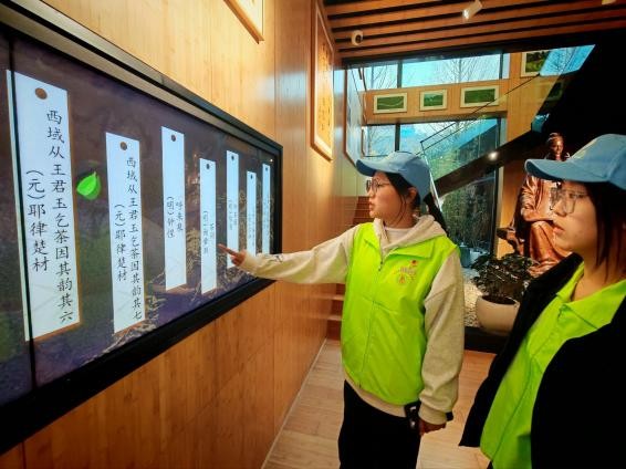 图2 团队成员在燕子窠“三茶”统筹馆学习茶文化内容实践活动虽已结束,却在每位成员心中播下了责任与担当的种子。大家深刻认识到,青年学生的成长从来都不是孤立的,而是与国家发展同频共振的。习近平总书记的足迹,是指引众人前行的方向;他的嘱托,是激励大家奋进的动力。这次实践活动增强了团队成员对生态文明与乡村振兴战略的情感认同和行动自觉。诸位表示,将以此次实践为起点,继续扎实学习专业知识,积极承担社会责任,在传播生态理念、传承茶文化、助力乡村振兴的道路上践行青春使命,努力成为堪当民族复兴大任的时代新人,用实际行动书写属于这个时代的青春篇章。