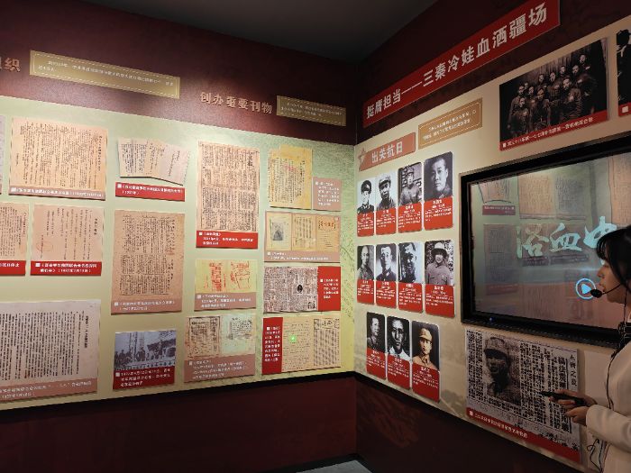 团队首站走进西安外国语大学人工智能产教融合实训基地,成员们沉浸式体验虚拟现实场景模拟、数字人交互等前沿技术应用。该基地依托自主设计的VR游戏开发技术,打造出高度真实的体验平台,搭建起现代社会与红色战场的数字桥梁,让体验者身临其境地感受战场氛围,在沉浸式体验中厚植爱国情怀,同时以技术创新赋能红色文旅产业升级。此外,西安外国语大学还自主搭建了超2000万条资源的文旅文献数据库,并同步打造配套AI应用平台,为文旅产业数字化发展提供坚实的数据与技术支撑。