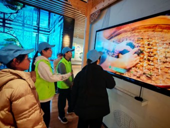 图2 团队成员观看制茶技艺视频移步茶文化展区,氤氲的茶香与厚重的文化气息交织相融。成员们围在资料展板前,结合馆内的文字与图片资料,细细拆解“三茶”融合的深刻内涵。苏轼“武夷溪边粟粒芽”的诗句,这些鲜活的文化符号,让武夷茶真正“活”了起来。茶产业是载体,武夷山有一万多家茶企,早已跳出单一卖茶叶的模式,茶食品、茶化妆品等衍生品层出不穷,产业链越拉越长。目光落在廖红教授生态茶园模式的介绍展板上,还有智慧茶园的监测系统,实时掌握土壤、湿度数据、气候,都是科技给茶产业注入的新动力。