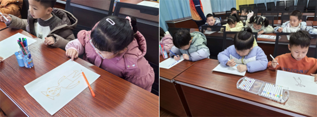 课堂之上,志愿者们还带领孩子们开展“我心中的超级英雄”绘画活动。稚嫩的笔触在白纸上流淌,有的画出冲锋的战士,有的画出逆行的消防员,每一笔都是对勇敢与奉献的最纯真注解。志愿者们蹲下身,与孩子们并肩而坐,在交流中倾听童心,在陪伴中传递温暖。活动室里,画笔划过纸张的沙沙声与孩子们的笑声交织,成了寒冬里最动人的乐章。