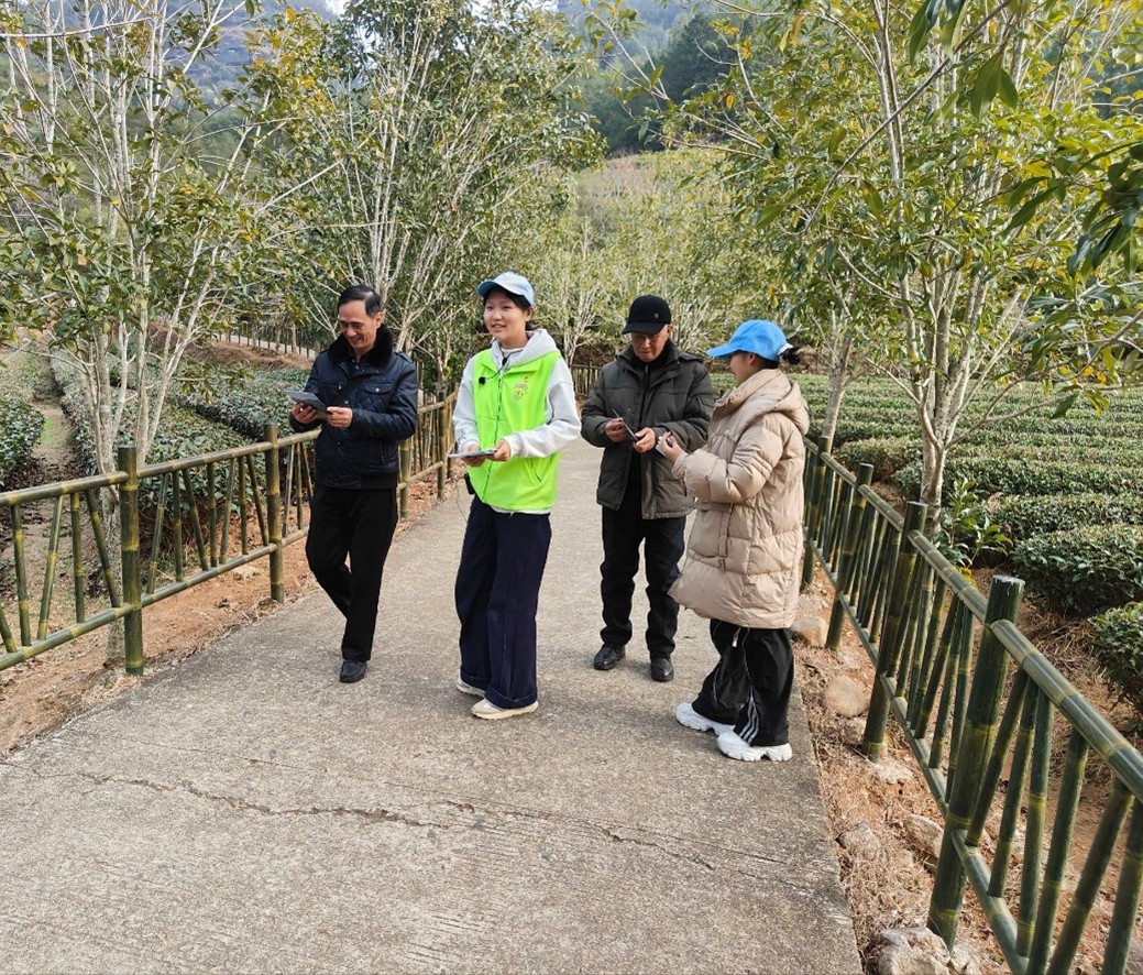 为了让讲解内容更扎实,实践前团队做了充分准备,查阅大量文献资料,在张老师指导下对茶园不同区域的土壤和叶片进行采样检测。讲解中,队员们注重将科学知识与人文故事相融合。他们讲述科研团队如何将实验室成果转化为田间实践,讲述茶农从最初的不了解到主动参与,讲述这片茶山如何从单纯生产区转变为生态、生产、生活融合的可持续发展典范。